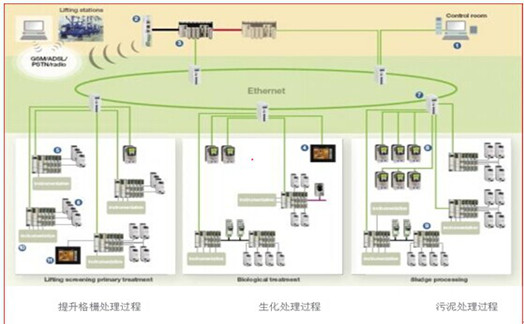 1、自動化控制系統(tǒng)構(gòu)成 凈水廠的綜合自動化監(jiān)控系統(tǒng)通常分為設(shè)備層、控制層及管理層三層結(jié)構(gòu)。控制層完成具體的取水、混凝、沉淀、過濾、送水等環(huán)節(jié)的測控;管理層主要負(fù)責(zé)狀態(tài)監(jiān)控、數(shù)據(jù)采集、故障報警處理等工作?刂茖拥母鞴に嚟h(huán)節(jié)位置分散,位于中控室的控制中心將進行統(tǒng)一監(jiān)控,因此具有集中監(jiān)控、分散控制的特點。