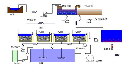 3.典型案例 【項目名稱】某凈水廠 【工藝流程】采用“混凝→沉淀→過濾→消毒”流程 【項目規(guī)!50000m³/日 【項目背景】 凈水廠建立2009年,占地100畝,投資2500萬元,年供水能力5000萬立方,并且于2010年12月正式投入使用。